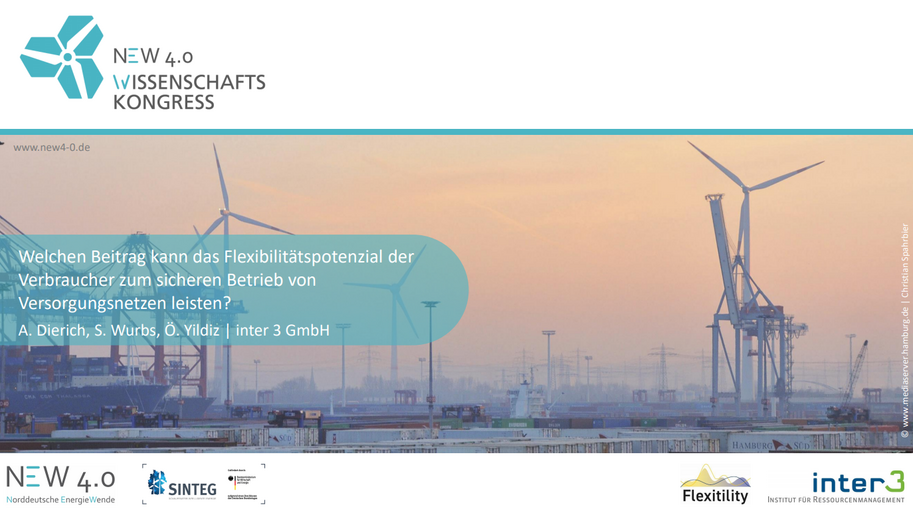 Beim Wissenschaftskongress „NEW 4.0 - Norddeutsche Energiewende“ des gleichnamigen Sinteg-Projekts am 29. Januar 2021 hat inter 3 in einem Fachbeitrag ausgewählte Zwischenergebnisse aus dem Projekt „Flexitility“ vorgestellt. Im Rahmen der Onlineveranstaltung ging Axel Dierich dabei der Fragestellung nach, welchen Beitrag das Verbraucherhandeln zum sicheren Betrieb von Versorgungsnetzen leisten könne.