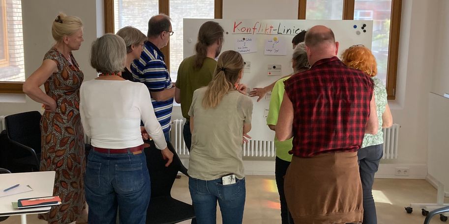 Am ersten Tag des zweitägigen Workshops stand das gegenseitige Kennenlernen im Vordergrund. Besonders neugierig waren wir auf die Erfahrungen, das Wissen und die Emotionen, die die Teilnehmer:innen in eine Wald-Debatte mitbringen. Welche Verhaltensweisen oder Handlungen bringen die Anwesenden „auf die Palme“? Welche positiven, aber auch negativen Eigenschaften identifizieren die Teilnehmenden bei sich selbst, wenn es in der Debatte einmal nicht mehr rund und konstruktiv läuft?